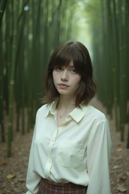 2000年代初頭のインディー映画とアナログポートレート写真が融合した、憂鬱で親密、自然にレトロな雰囲気。
