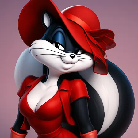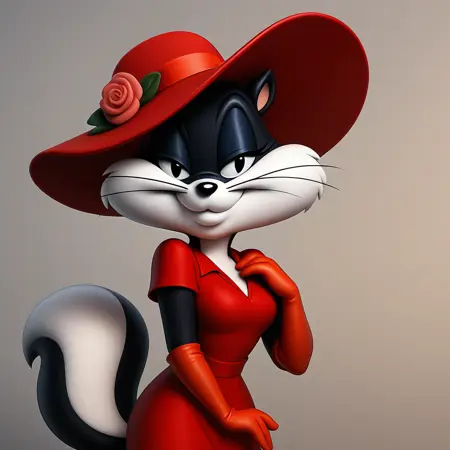 <lora:penelope_lora:1>, penelope_pussycat, red_dress, large_hat, cartoon_style, 3d_render