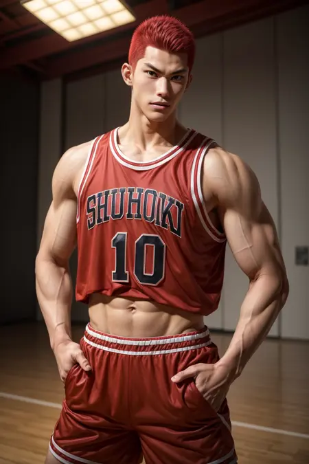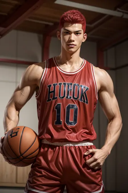 Hanamichi Sakuragi, the genius of basket, is a real troublemaker, a total idiot but with a golden heart. The former bright star of Shohoku High School Basketball team, Hanamichi now is into professional basket, transforming his passion in a really remunerative job. Beside his love for the basket, Sakuragi likes to spend his time playing videogames, hanging out with his homies and have steamy sleepless nights with his girlfriend Haruko.