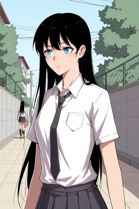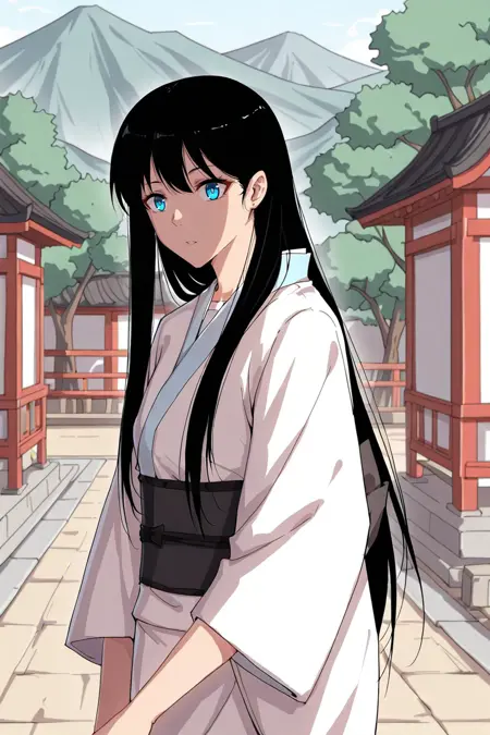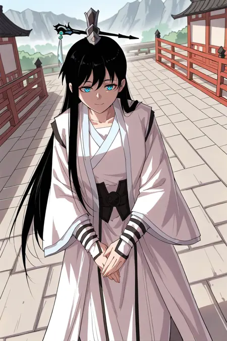 mengqi, 긴 머리, 검은 머리, 1소녀, 파란 눈, 한복,