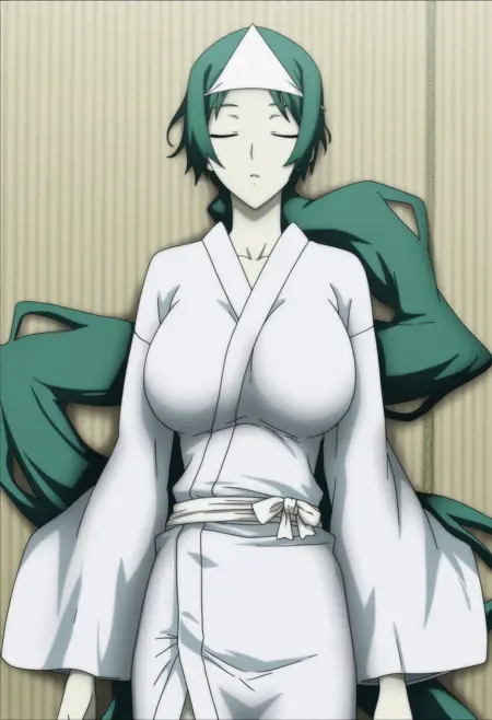 IL_Ritsuko Kunihiro Shiki,1girl,solo,ponytail,green hair,breasts,pale skin,red eyes,colored sclera,black sclera,long hair || very long hair