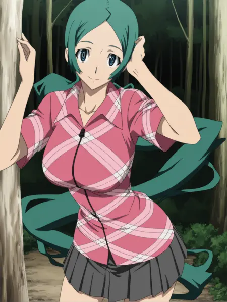 IL_Ritsuko Kunihiro,1girl,solo,ponytail,green hair,breasts,long hair || very long hair