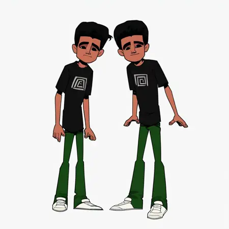 green pants, black shirt, pants, shoes, t-shirt, white footwear, short sleeves,