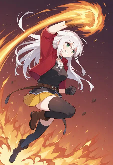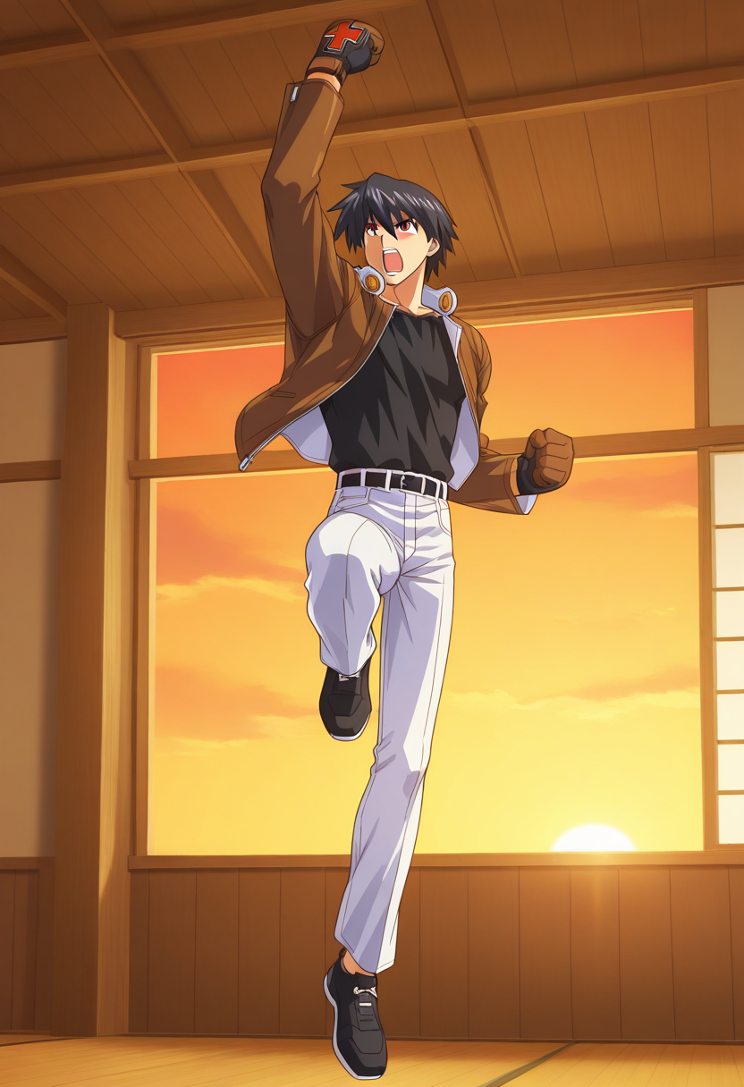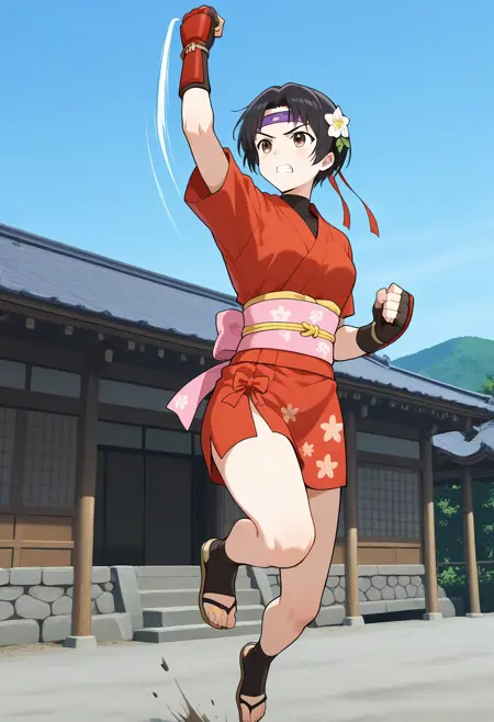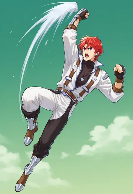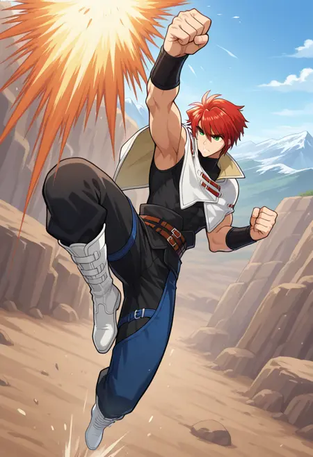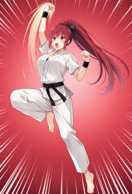这是《街头霸王》系列中的标志性招式之一。这个LoRA意外地也可以作为“虎裂升龙拳”LoRA使用,因为有时执行上勾拳的手臂对侧的膝盖也会抬起。
