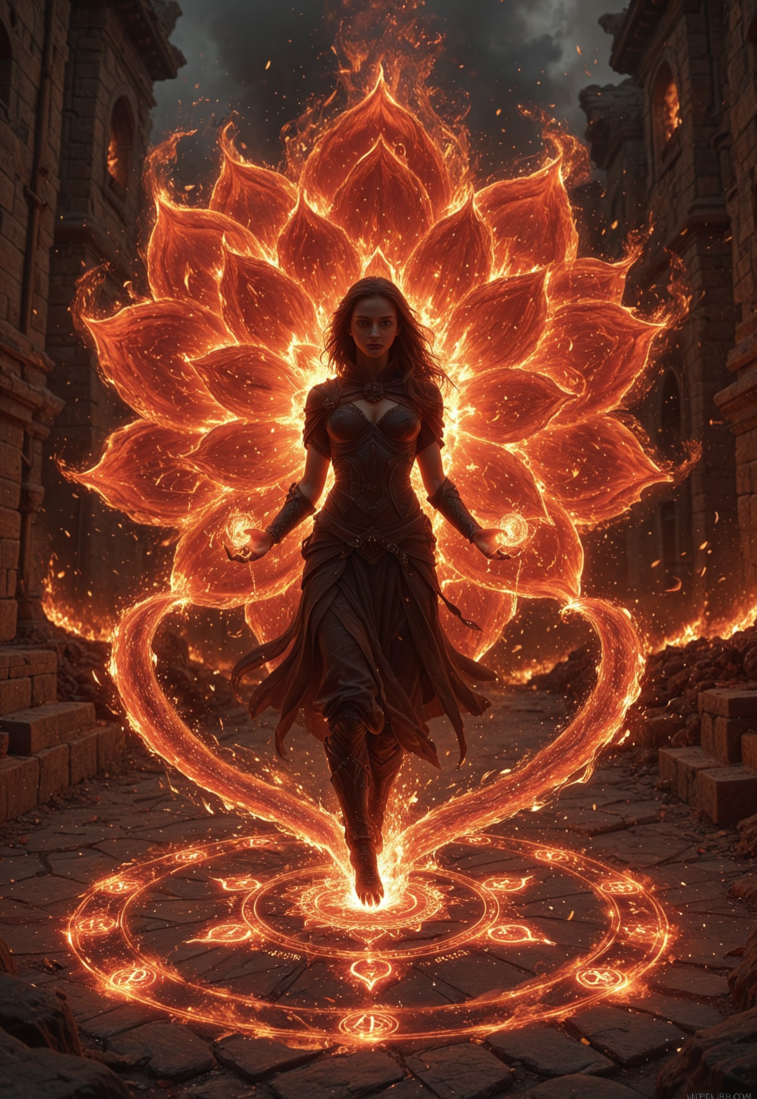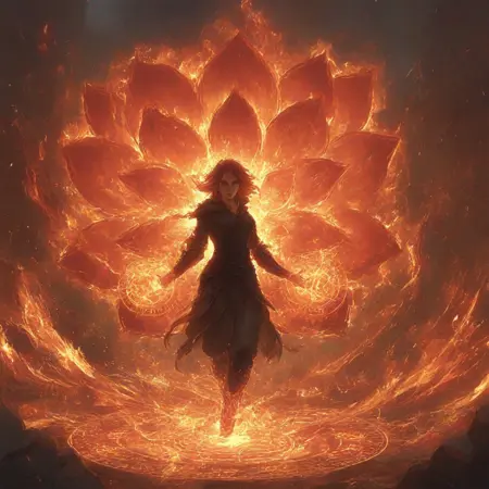 Infblomb2, infernal bloom, fire petals, burning flower, fire magic, flame aura, spell circle,