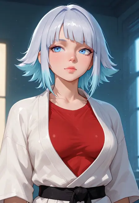 pony:lora:azure-v1 azure,sweet punishment,Light blue eyes, medium hair, silver hair,fluffy hair, unruly hair,light blue hair, two-tone hair,left side bangs, side strands, medium breasts, stretched eyes,(cat's pupil)