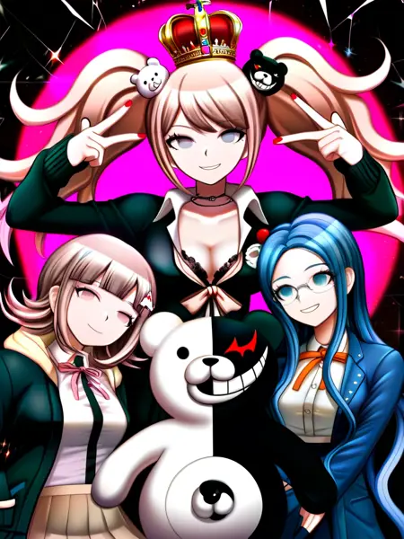 The Lumina version was my first attempt at a lora for the platform. It's trained on NetaYume Lumina and should work best with it or variants like Neta Cat Tower. The lora's usable, but I'd classify it as overly finicky and unpredictable. I've seen results with the lora range from negligible to great. Consider it a work in progress. On the plus side NetaYume Lumina already has a broad knowledge of Danganronpa. Really, the main change there brought by the lora is just that characters in Danganronpa 3 but not well represented on Danbooru come out more faithful to their intended design.