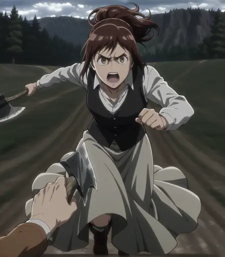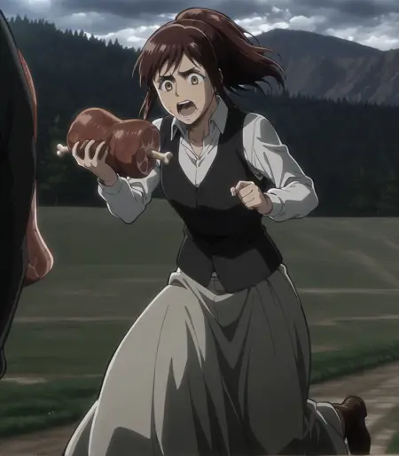 1girl, sasha braus, attack on titan style, brown hair, ponytail, light brown eyes,