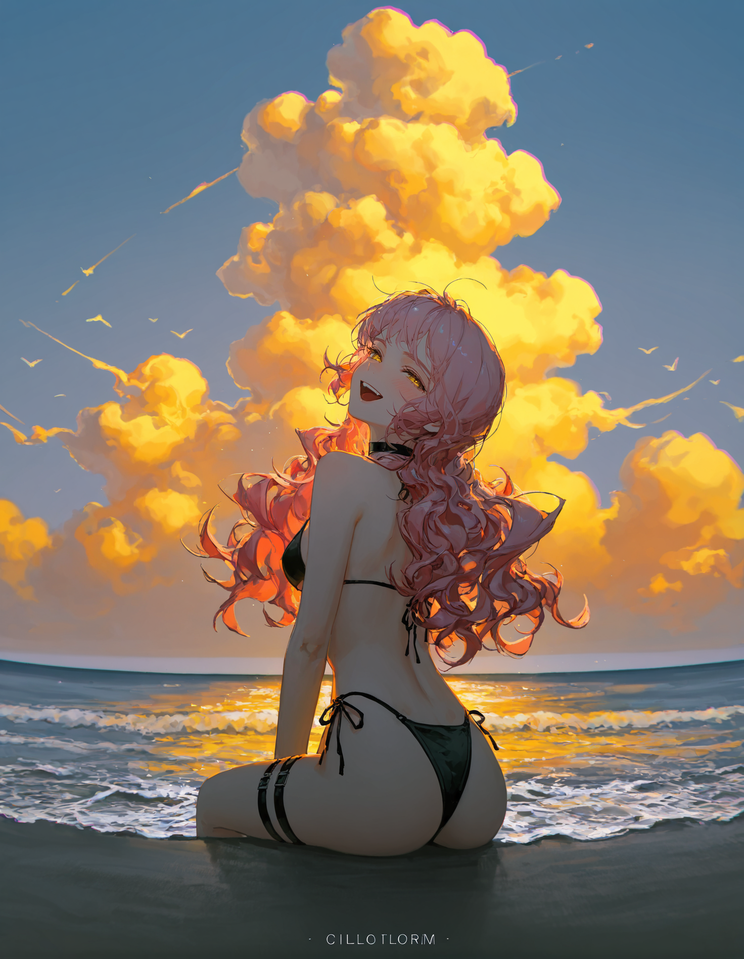 태그: litiya,yellow eyes,pink hair,long hair,wavy hair,
