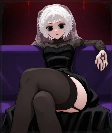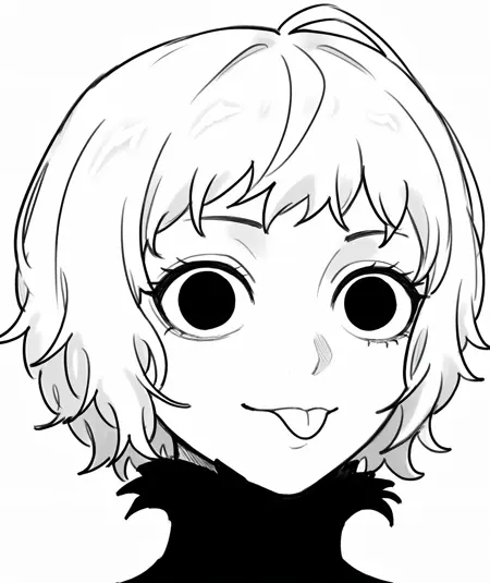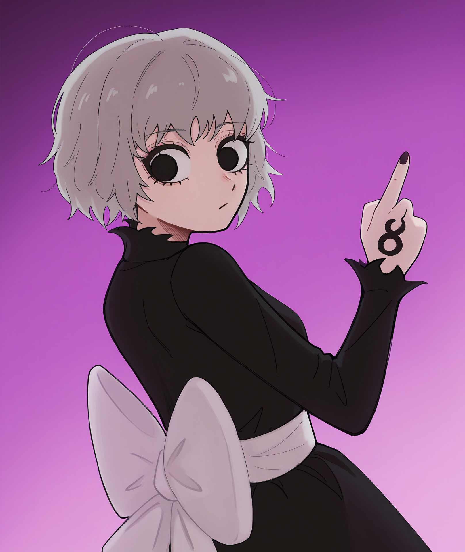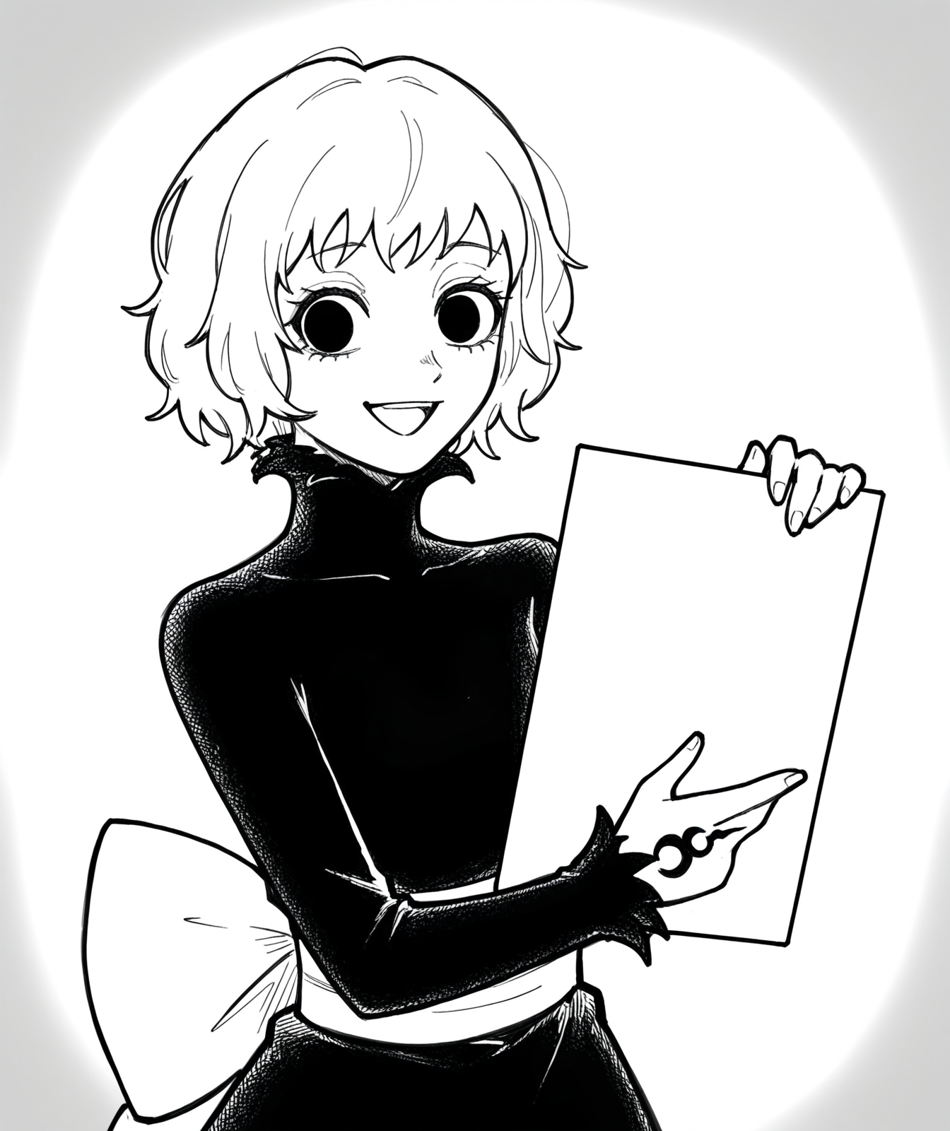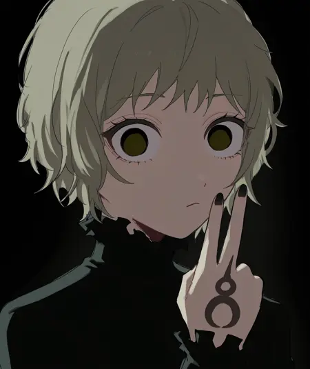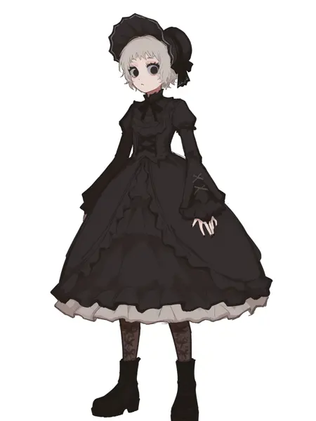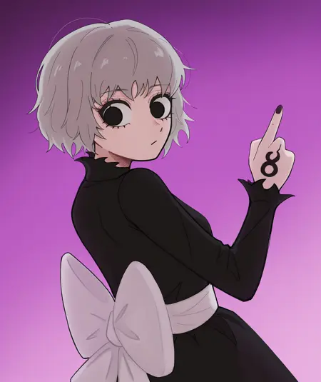 関連プロンプト:短い髪、黒い目、黒いドレス、帯、手のタトゥー