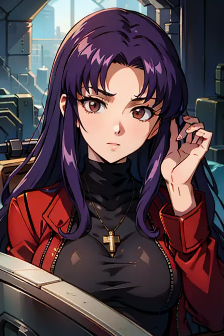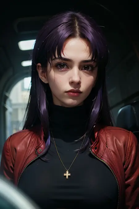 프롬프트: 29세 소녀의 놀라우며 복잡한 컬러풀한 초고해상도 초상화, 긴 물결친 인디고 파란 머리, 갈색 눈, 상세한 얼굴, 느슨한 빨간 재킷, 짧은 흑색 민소매 드레스(높은 칼라), 목걸이 크로스오버, 화려한 캐릭터 구성, Alessio Albi, Nina Masic, 선명한 초점, 자연광, 피하 산란, f2, 35mm