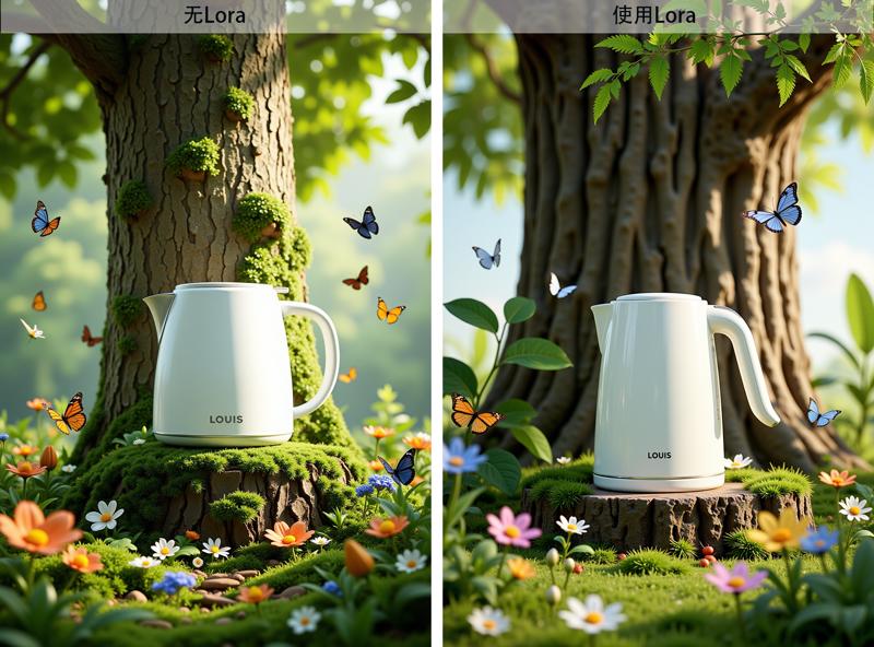 The images generated by Lora show significant improvements in color, clarity, and aesthetics. Compare the effects of using Lora and not using Lora as shown in the following figure:
