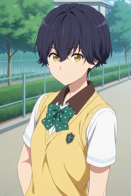 그녀의 학교 유니폼의 정확도는 매우 낮다. 애니메이션에서 그녀는 거의 항상 트랙수트를 입고 있으며, 유니폼을 입은 장면은 손가락으로 셀 수 있을 정도로 드물다.