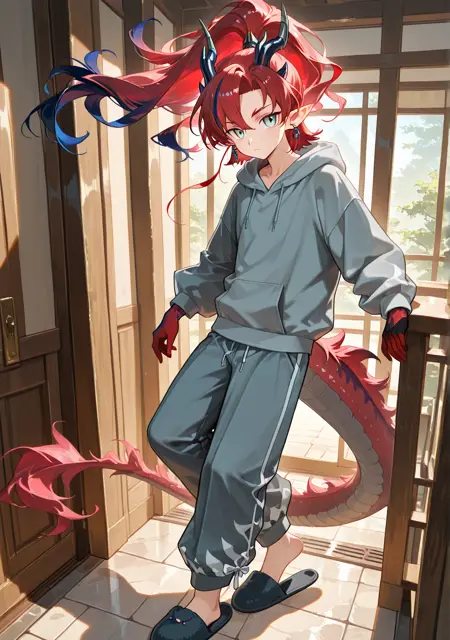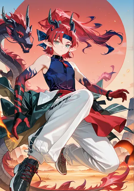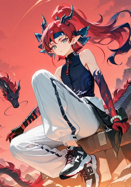 | 训练词汇 | yu, default, dragon boy, dragon horns, multicolored_eyes, red_eyes, green_eyes, slit_pupils, earrings, long hair, multicolored hair, red hair, black_hair, hair ribbon, high ponytail, gradient skin, colored_skin, arm tattoo, grey coat, high collar, wide_sleeves, jewelry, pointy ears, dragon_tail, flame-tipped tail, sneakers, white pants, baggy_pants, tassel, 已复制! yu, collaboration, dragon boy, dragon horns, multicolored_eyes, red_eyes, green_eyes, slit_pupils, earrings, long hair, multicolored hair, red hair, black_hair, high ponytail, colored_skin, grey hoodie, baggy pants, grey pants, fluffy clothes, barefoot, 已复制! yu, plot, dragon boy, dragon horns, multicolored_eyes, red_eyes, green_eyes, slit_pupils, earrings, long hair, multicolored hair, red hair, black_hair, high ponytail, gradient skin, colored_skin, arm tattoo, sleeveless shirt, bare shoulders, headband, black shirt, bead_bracelet, tassel, sneakers, white pants, baggy_pants, coat_around_waist, clothes_around_waist, red_apron, 已复制! |