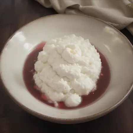 本质上是米粥混合奶油。可完美搭配水果酱或其他水果 topping。使用市售米粥仅需 3 分钟即可制作完成。