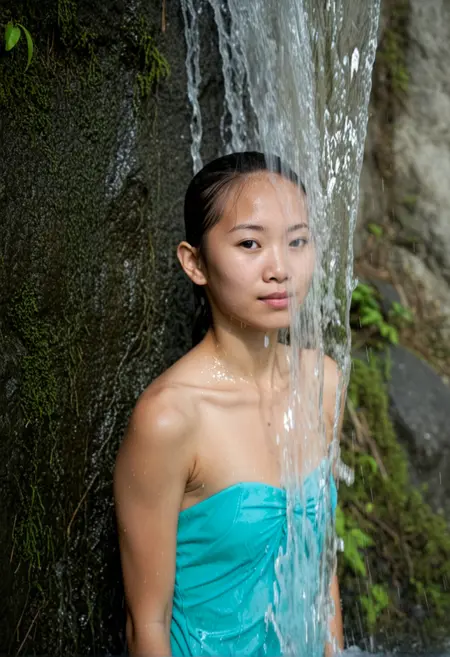 주요 태그: in waterfall (이미지에 폭포를 추가; 다른 시나리오(예: 샤워 등)에서 물 상호작용을 원한다면 제외하세요. 물과 관련 없는 환경에서도 환상적인 효과를 낼 수 있습니다.)