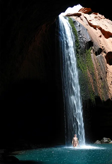 Photorealistic, allows subject interaction with moving water, mainly waterfalls, in SDXL derived checkpoints, except Pony/Illustrious.