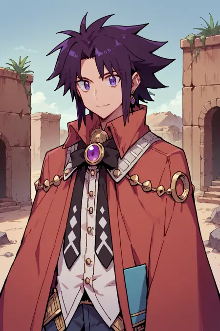 revin,1boy,pants,coat,red_shirt,black_bow,black_gloves,shoes,spiked_hair,black_hair,