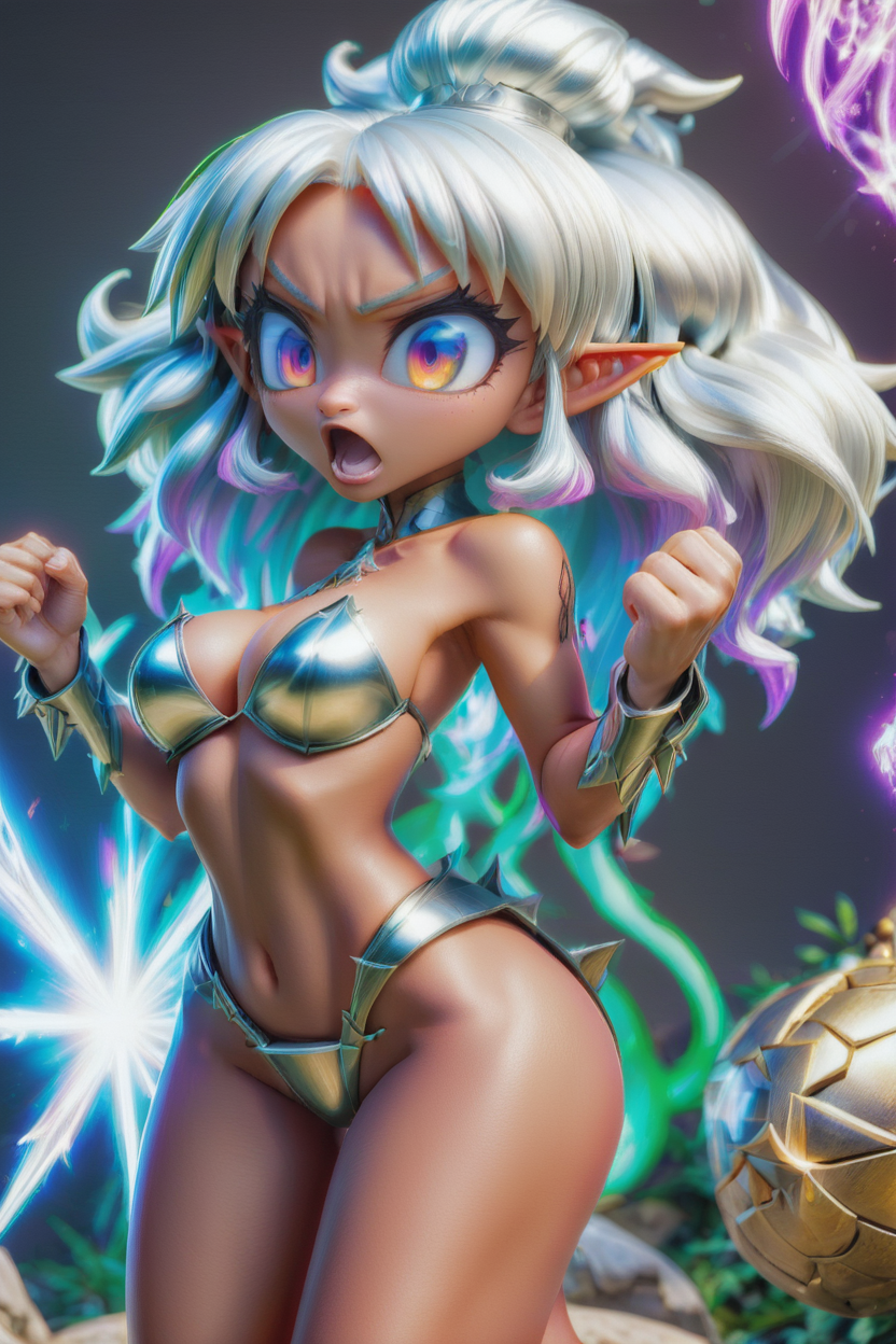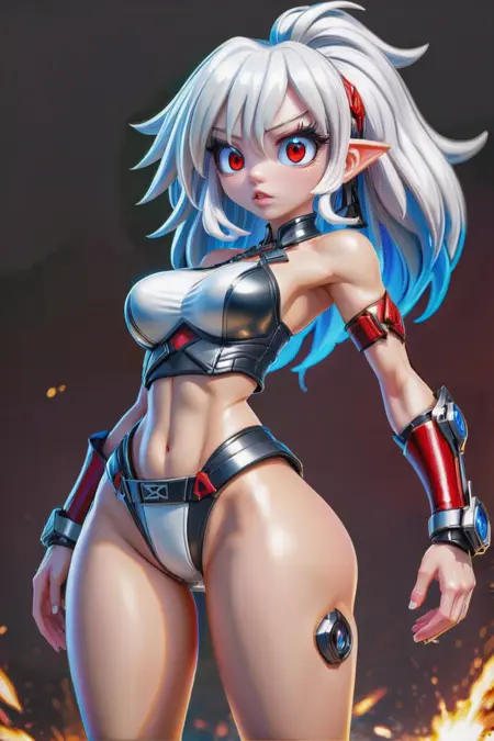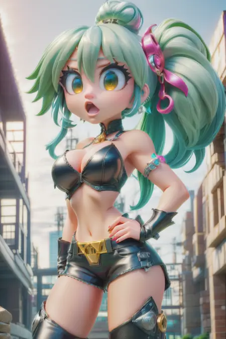 이 모델은 귀여우면서도 과장되고 만화적인, 광기 어린 분위기를 결합한 것입니다. 기이한 표정을 잘 구현해냅니다.