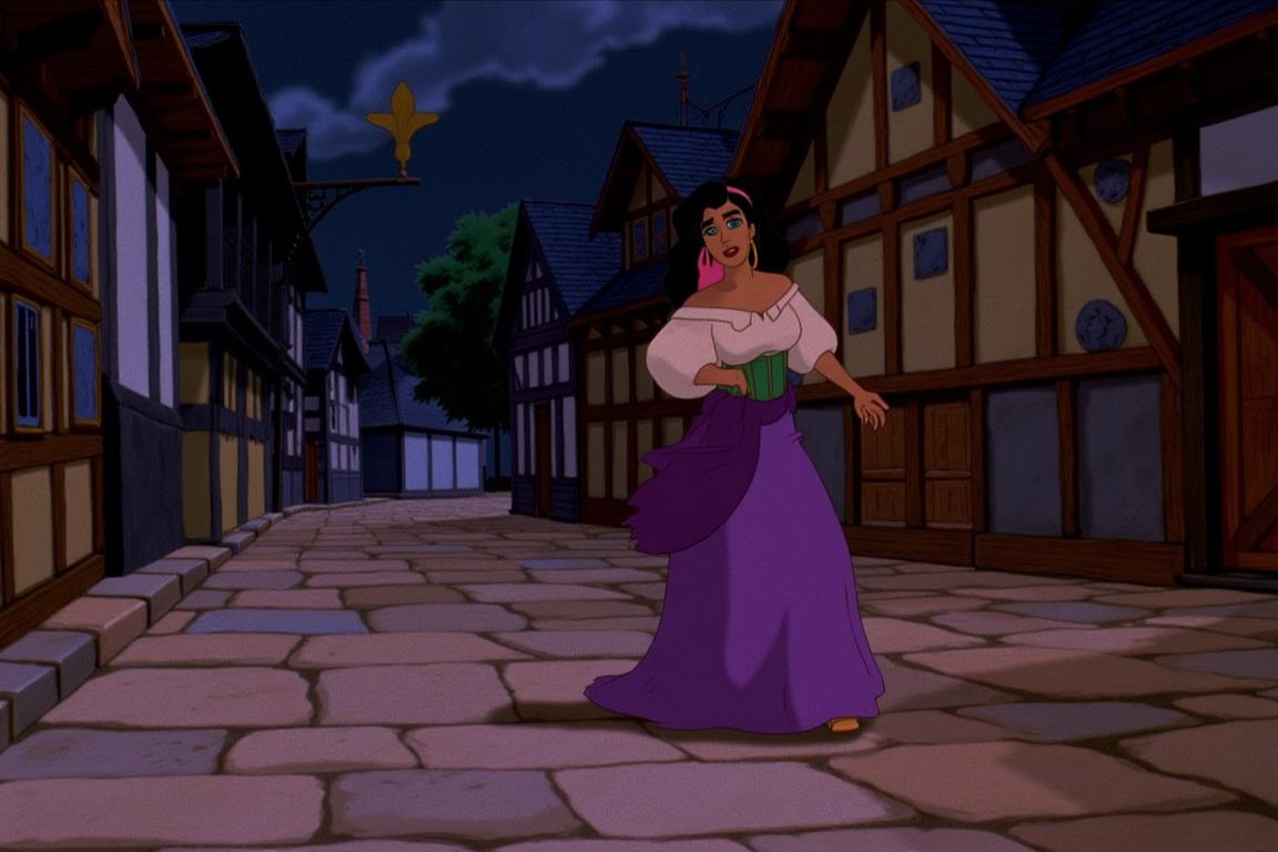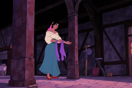 에스메랄다는 1996년 디즈니가 제작한 미국 애니메이션 고딕 시대 음악 영화 『노트르담의 곱추』에 등장하는 캐릭터로, 빅토르 위고의 1831년 동명 소설을 느슨하게 각색했다. 데미 무어가 목소리를 맡았다. 애니메이션 영화와 사전 제작 스케치에서 추출한 22개의 소스 이미지로 학습되었다. 플럭스 학습 10개의 이미지 단계, 6번째 에포크. 최초의 모델은 샤킬에서 학습되었다.