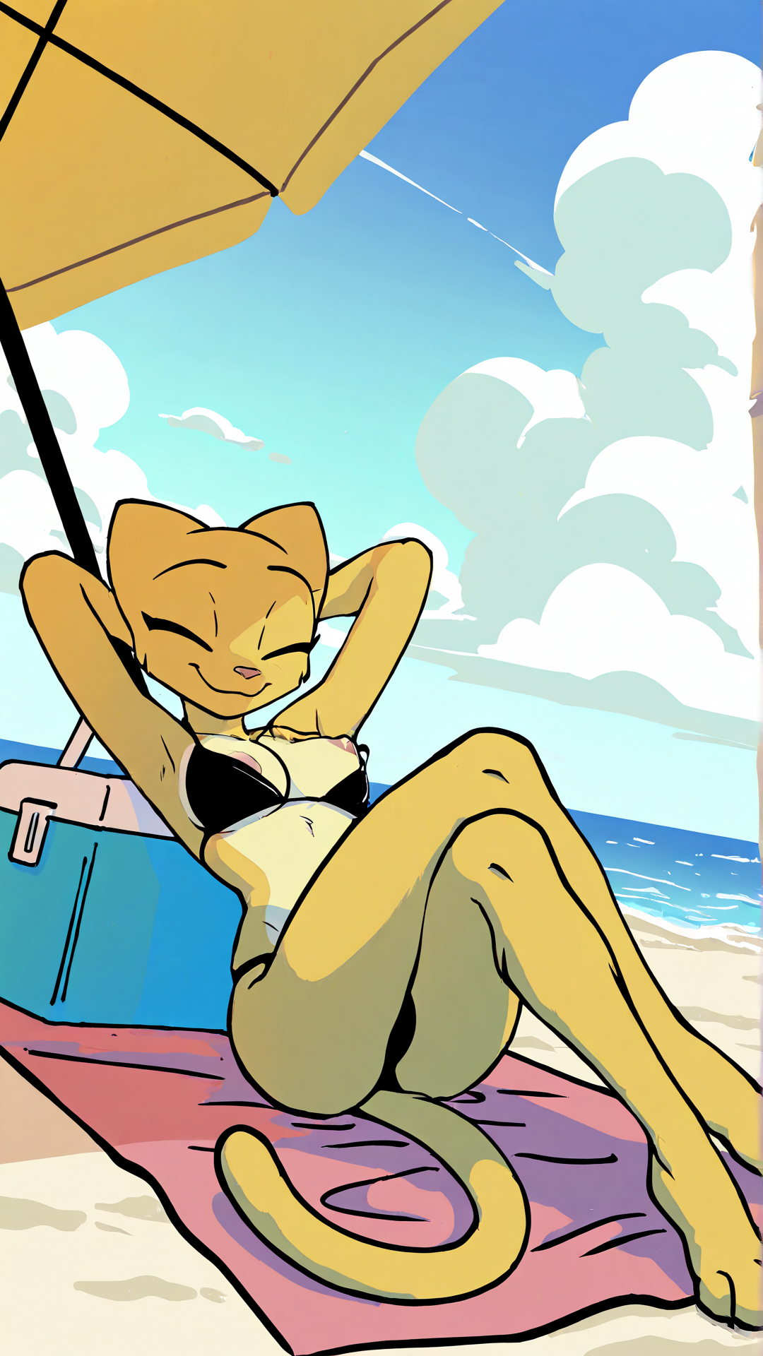1girl, k4tia, furry female, yellow fur, solo, tail