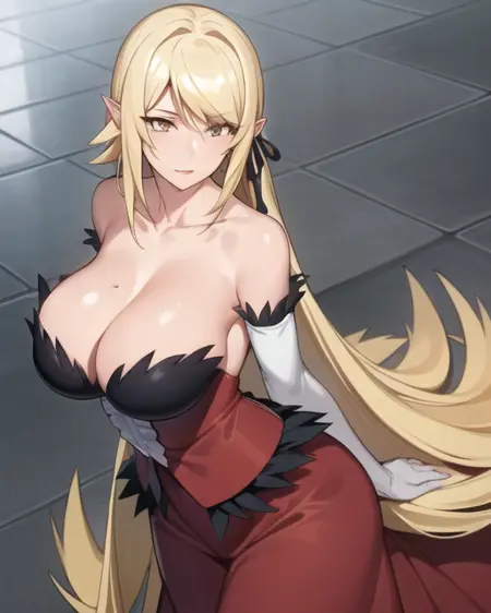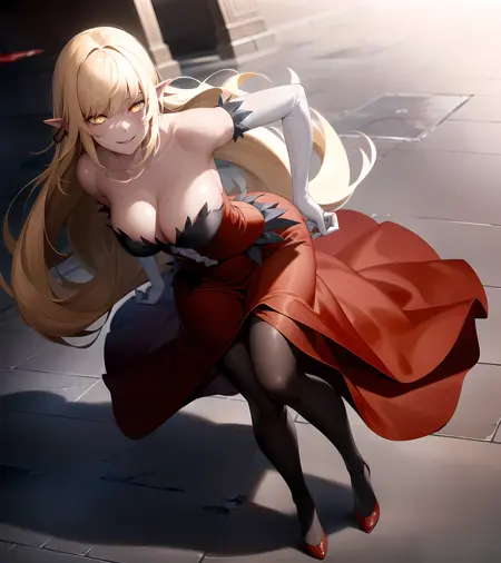 빨간 드레스, 양말스타킹, 긴 스커트, 드레스 스커트, 노란 눈