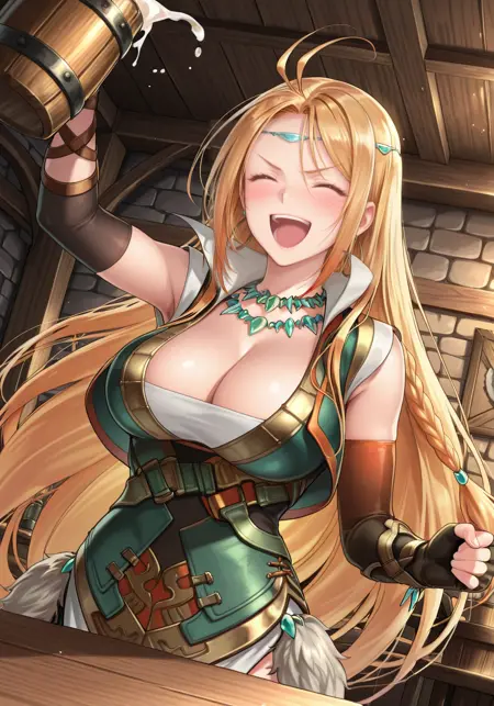 触发词:ullrFEH1,金色头发,长发,呆毛,橙色眼睛,发辫