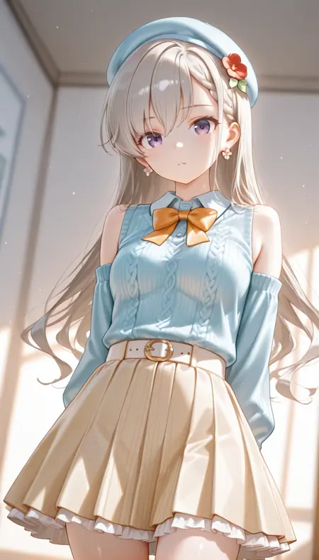셔츠, 치마, 긴 소매, 머리 장식, 모자, 활, 보석, 어깨 드러남, 꽃, 귀걸이, 주름치마, 분리형 소매, 소매 없음, 칼라 셔츠, 벨트, 나비매듭, 머리 꽃, 스웨터, 소매 없는 셔츠, 베레모, 파란 셔츠, 빨간 꽃, 파란 머리 장식, 버클, 노란 활, 벨트 버클, 주황색 활, 겹쳐진 치마, 기울어진 머리 장식, 노란 치마, 흰 벨트, 파란 소매, 케이블 니트, 주황색 나비매듭, 다색 치마, 꽃 귀걸이, 허벅지,