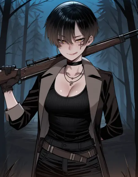 r31t0m,交叉面部标记,项圈,项链,外套,背心,露胸,腰带,裤子