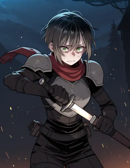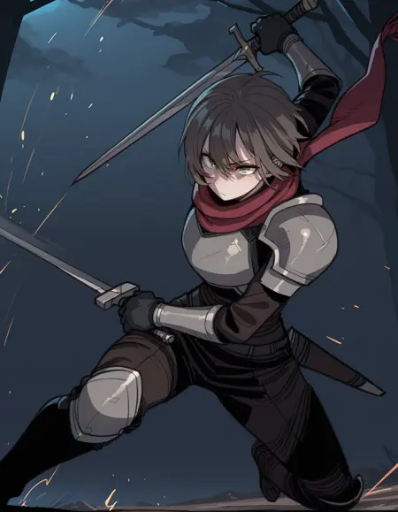 - 1boy,单人,男性焦点,b0ykn1gh7,围巾,肩甲,胸甲