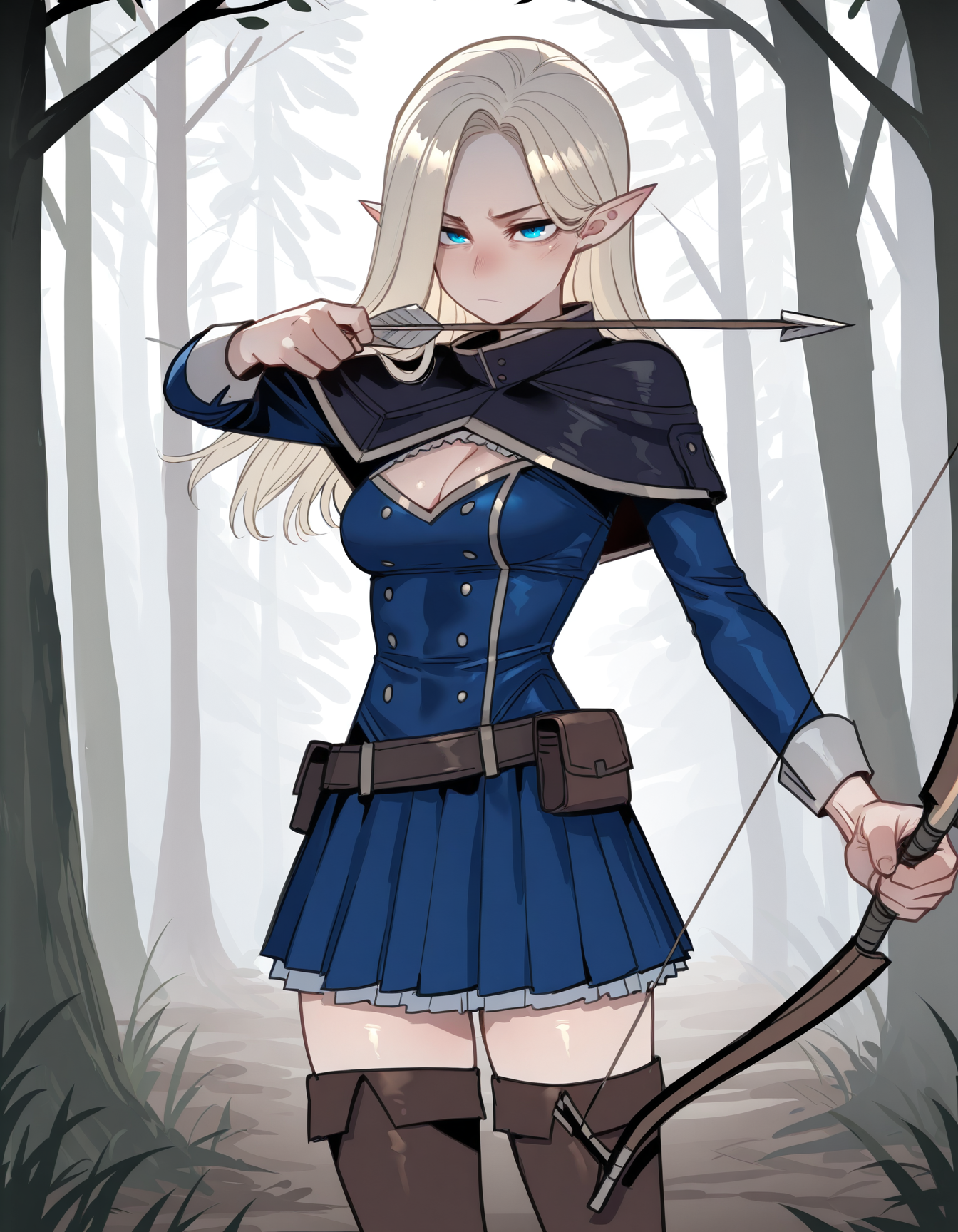 a5h3m4g3,短披风,露胸剪裁,蓝色连衣裙,蓝色裙子,腰带,腰带包,大腿靴