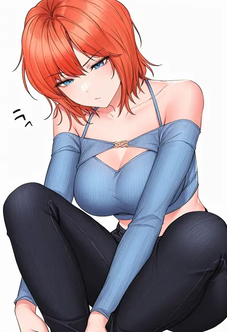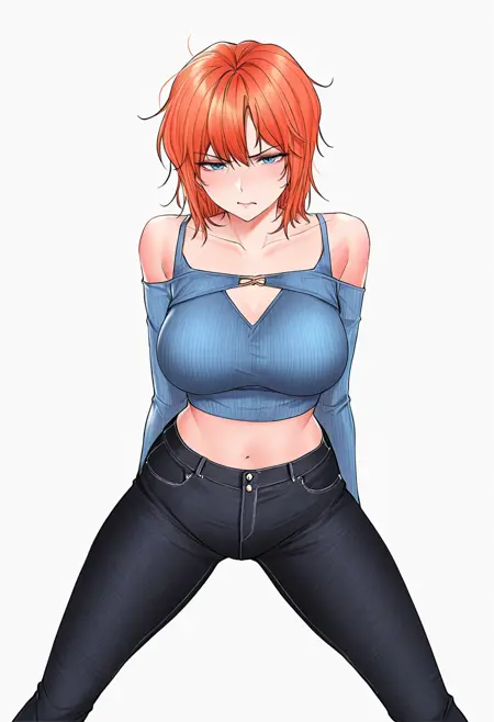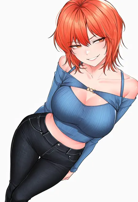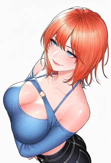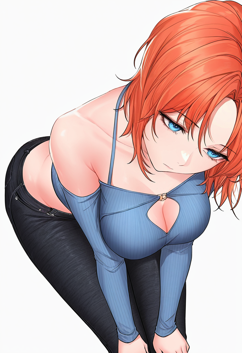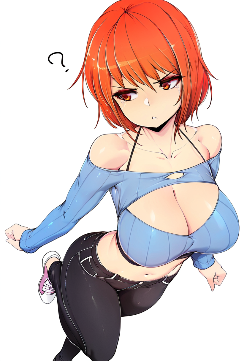 ruri_cnr, 1girl,orange hair, short hair, large breasts,