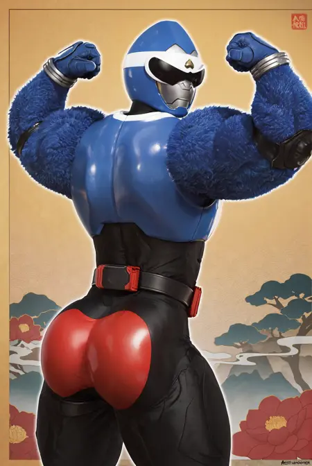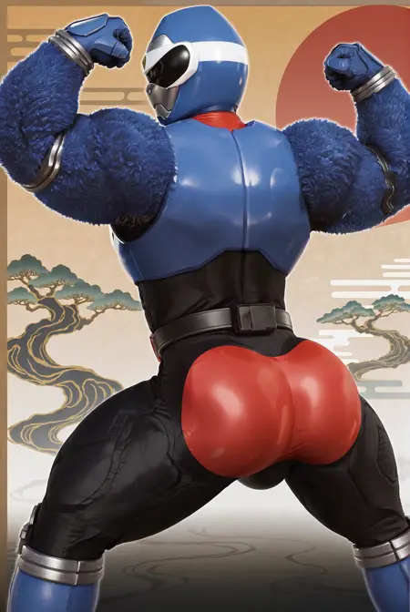 s4ru brother, thick thighs, arm fur, helmet, belt, armor, tokusatsu, boots