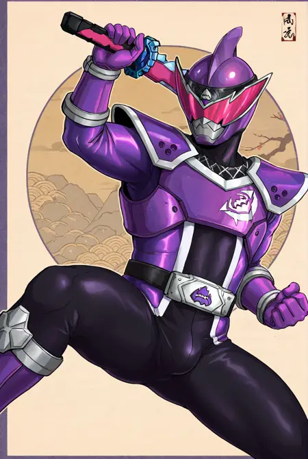 d0n murasame, armor, helmet, tokusatsu, gloves, belt, purple gloves, bodysuit, boots,