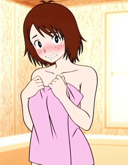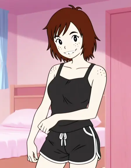 基础:kae0,棕发,短发,黑眼,雀斑,龅牙,裸露肩膀,锁骨,大乳房,