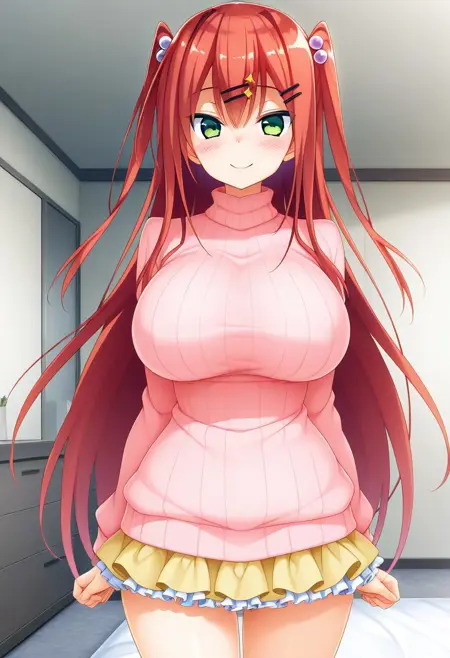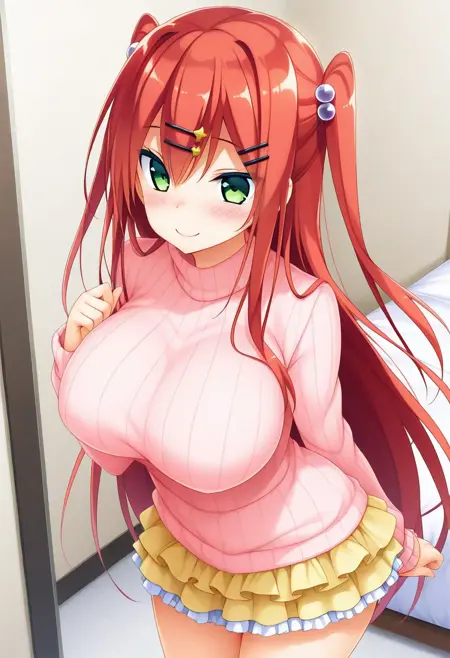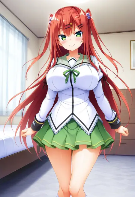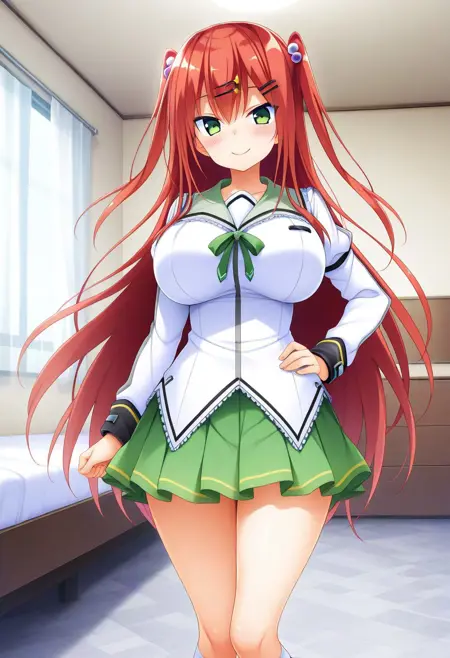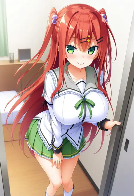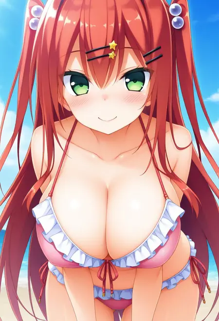 推奨プロンプト:Rio Saeki, green eyes, red hair, long hair, twi side up, hair ornament, hairclips,