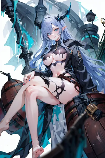 PS:キャラクターLoRAとして使用できます。推奨プロンプト:mary celeste-hairstyle, outfit-mary celeste, 1girl, look back, from behind, breasts, pointy ears, solo, horns, long hair, blue hair, ass, blue eyes, looking at viewer, smile, barefoot, symbol-shaped pupils, sky, outdoors, wet, blue sky, day, bangs, open mouth, hair between eyes, water, cloud, legs, ocean