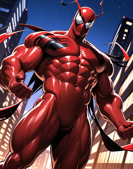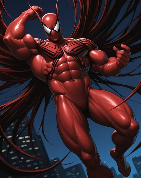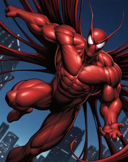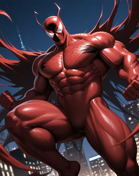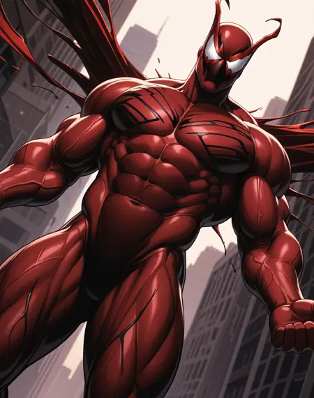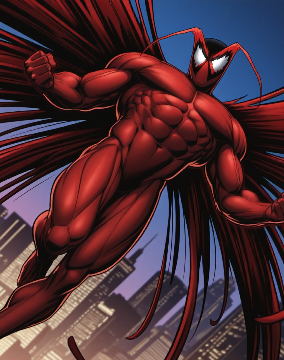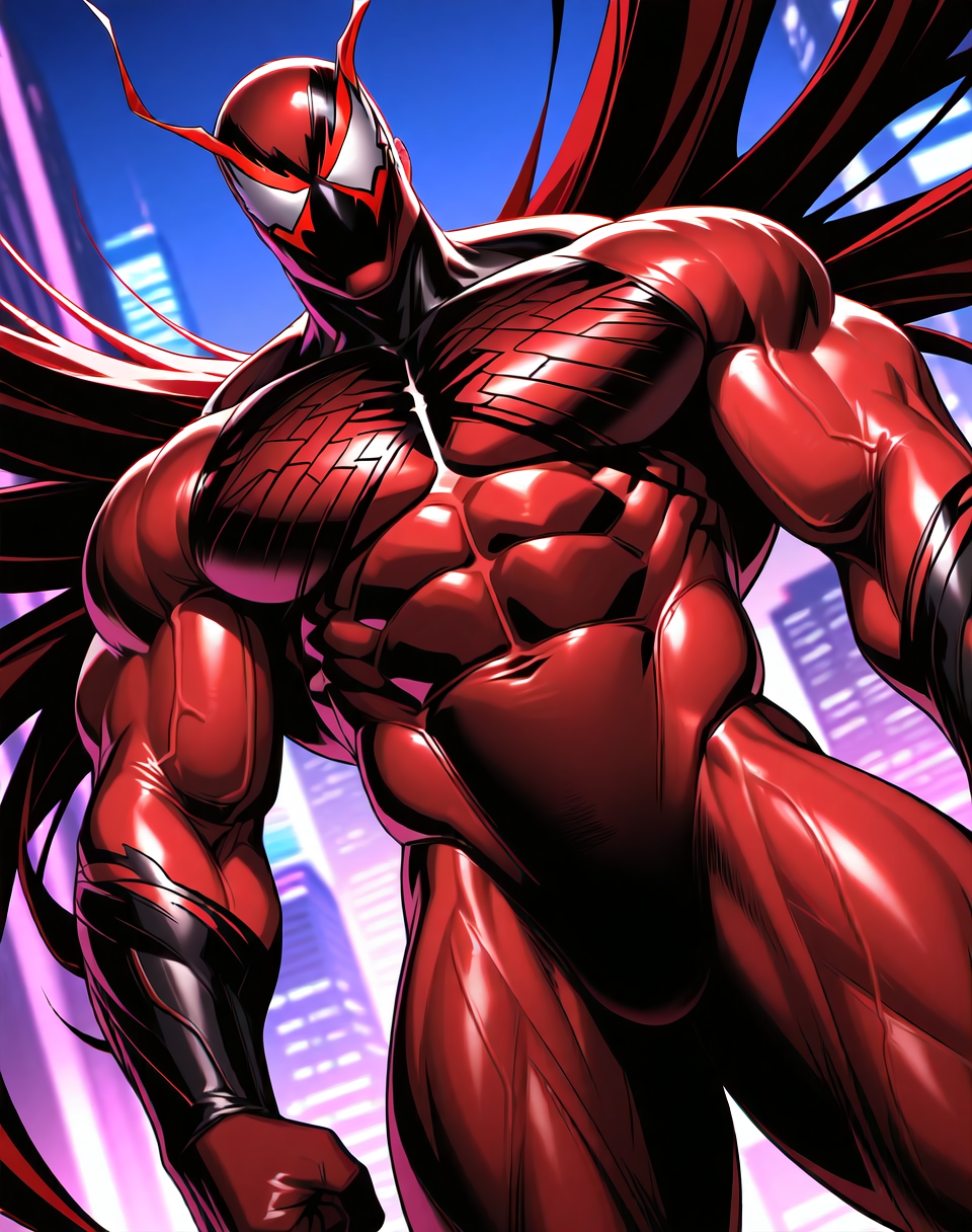 彼はシンビオートキャラクターであるため、ヴェノムやカーネージの画像がチェックポイント作成で広く使われていることから、それらのキャラクターの特徴が現れることがあります。そのため、ポジティブプロンプトとネガティブプロンプトの両方で適切に記述し、ヴェノムやカーネージの特徴が、胸にシンボルのない鮮やかな赤色の固体の体型を持つハイブリッドの外観を圧倒しないようにしてください。