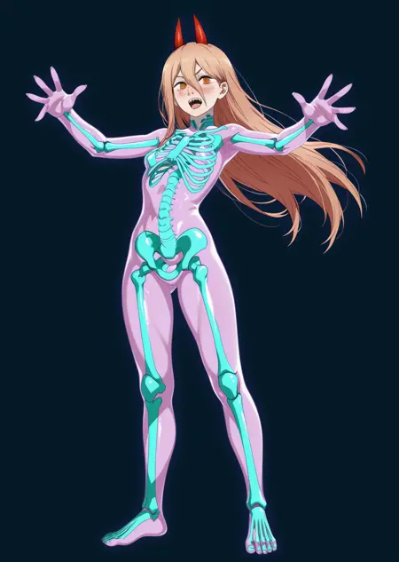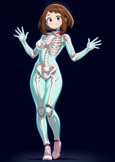 Prompts: transparent_skin, skeleton visible, transparent skin,
