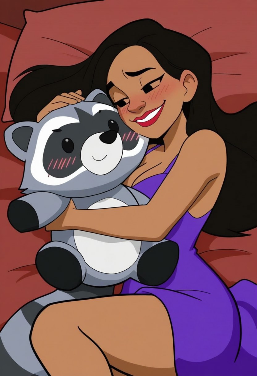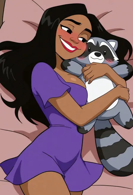 1woman,solo,female focus,Reporter FSD,long hair,black hair,black eyes,red lipstick,dark skin,breasts,cleavage,purple dress,