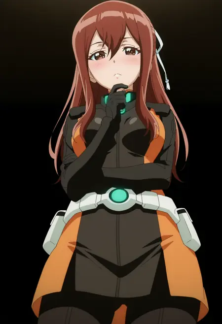 1girl, solo, kirigamine kiyomi, long hair, brown hair, hair between eyes, brown eyes, hair ribbon, bangs, white ribbon