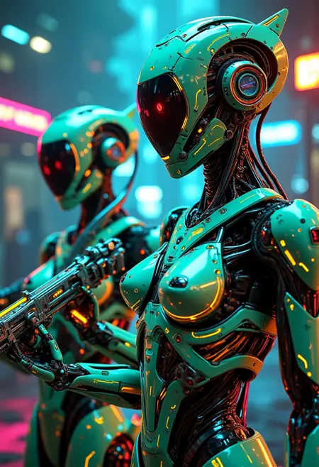 이 모델은 사이버펑크 로봇 이미지를 뛰어나게 생성하며, SF 및 게임 디자인 시나리오에 적합합니다.