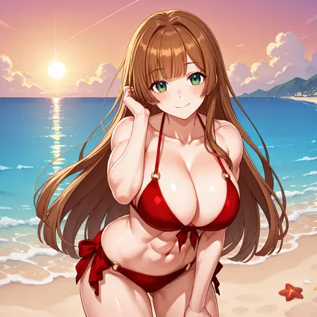 Base: Leanne_Aigis, Brown Hair, Long Hair, Muscular Female, Large Breasts