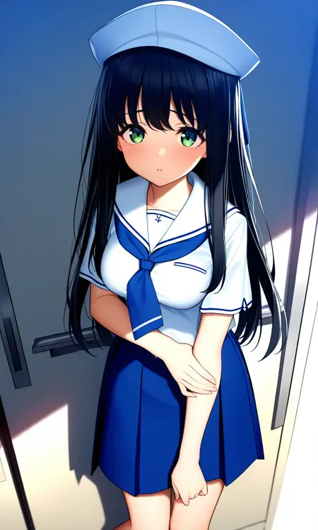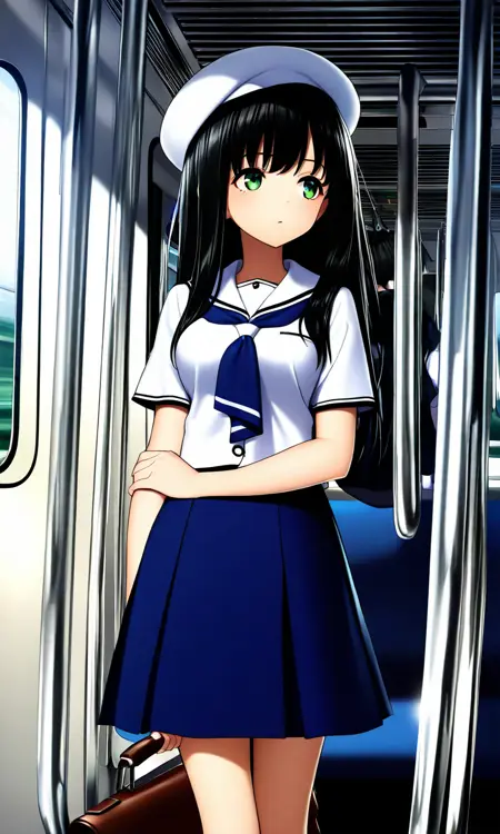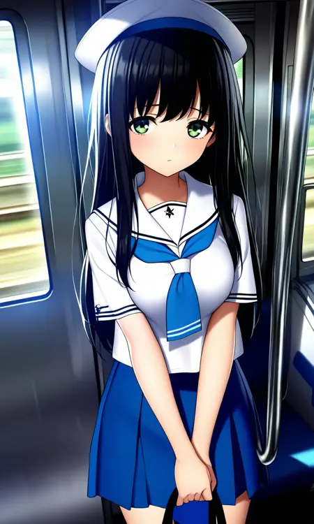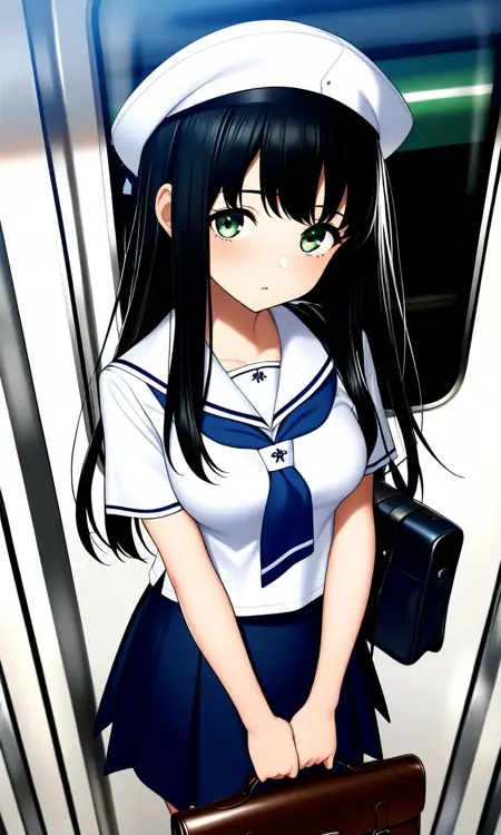 白い帽子に青いネクタイと白いセーラー服&青いスカートの女の子。黒髪ロングで瞳の色は緑。名前は設定されていない。大人しく清楚な感じの美少女だが、痴漢をされても屈せず、必死に耐えるので意思はとても強いタイプ。