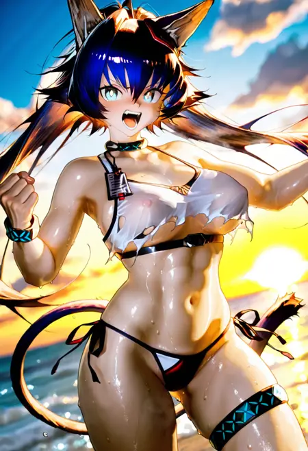 • NSFW model: 1girl (Arknights_Blaze, Arknights_Blaze nude, large breasts, Arknights_Blaze cat ears, Arknights_Blaze cat tail, Arknights_Blaze eyes, nude, spread legs, breasts, pussy, sitting in the sand)