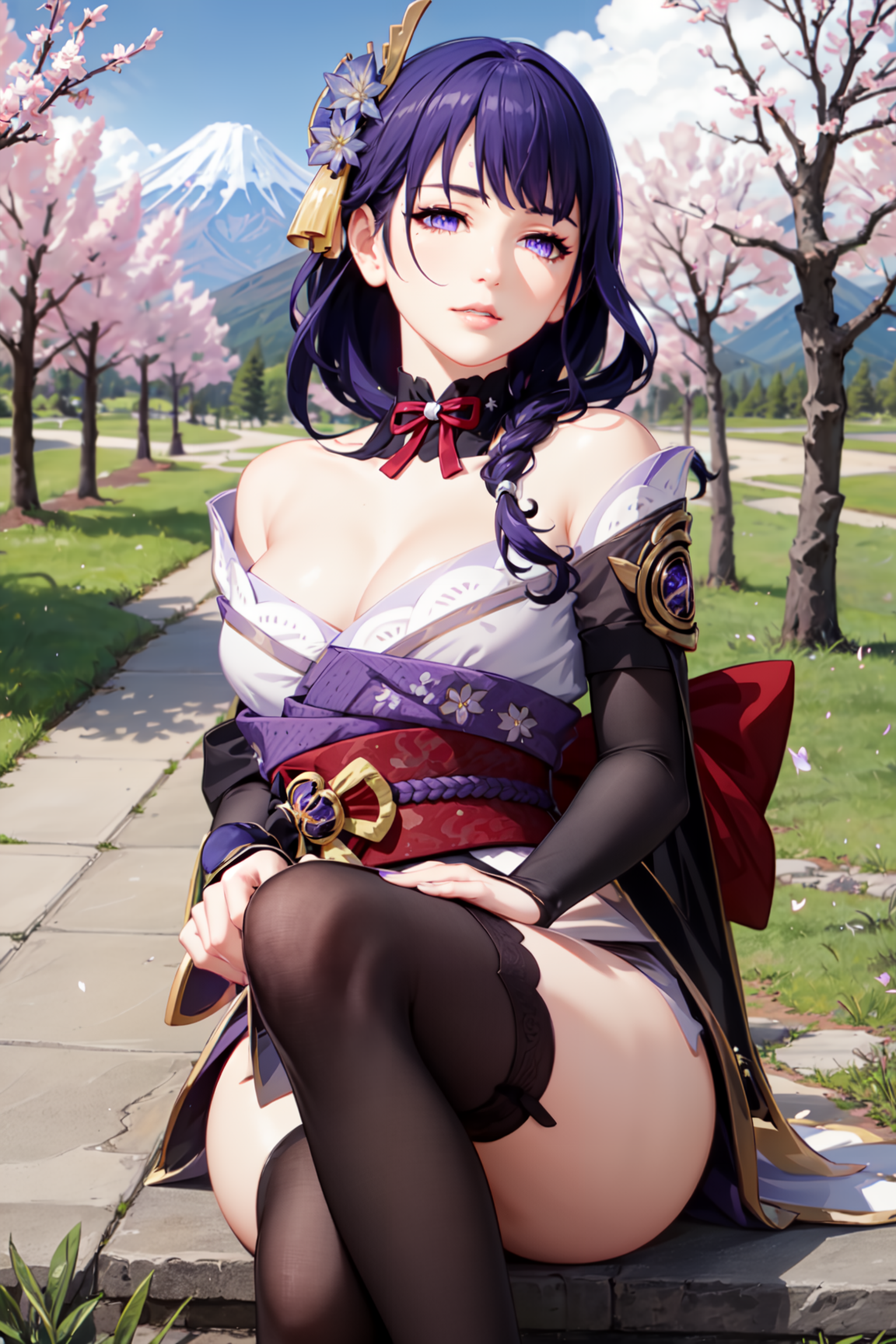 三巴(图案),紫色花朵,紫色和服,紫色过膝袜,丝带,