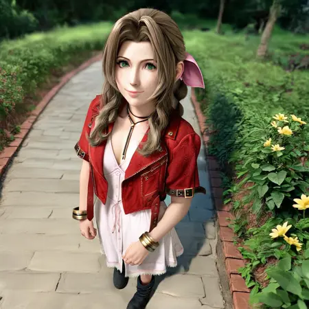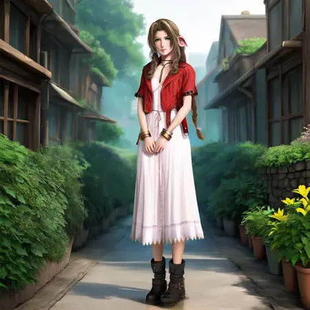 该模型可生成《最终幻想7 重制版》游戏中角色艾瑞丝·盖恩斯伯勒的肖像。