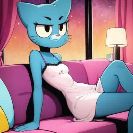 Helpful positives: blue skin, blue fur, cat girl, tail