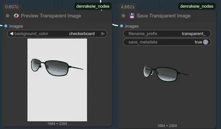 Save & Preview: Stores transparent PNGs (w/metadata) and previews them directly in ComfyUI with multiple background options.
