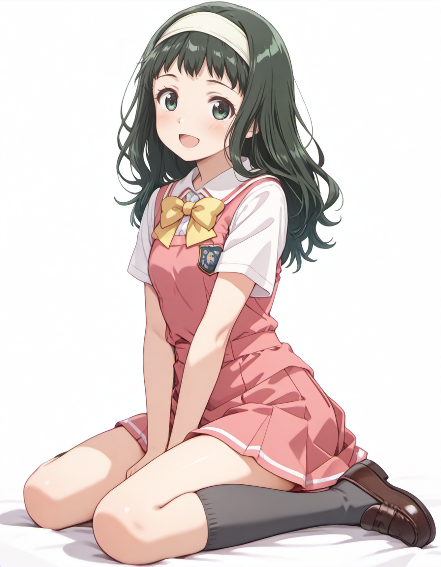 仅限“kamiizumi yasuna”时,请另设他人;请务必注明以下内容:kamiizumi yasuna, 1girl, solo, long hair, fern green hair, green eyes, white hairband。